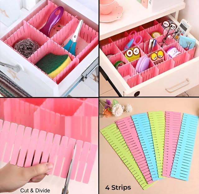 Keep your drawers neat and organized with our Adjustable Draw Partition Set (4 pcs). Designed for versatility, these dividers easily expand to fit various drawer sizes, helping you sort and store items effortlessly. Perfect for kitchens, offices, and wardrobes!