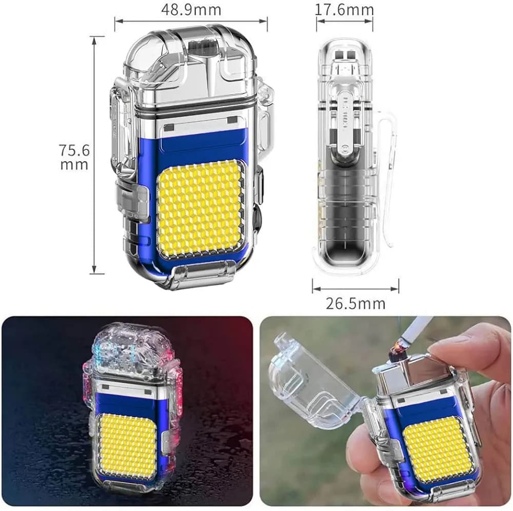 Experience the perfect blend of functionality and convenience with our IP65 LED flashlight USB rechargeable lighter. This windproof lighter is designed for outdoor camping enthusiasts, ensuring you’re always prepared for any situation. The durable construction can withstand various weather conditions.