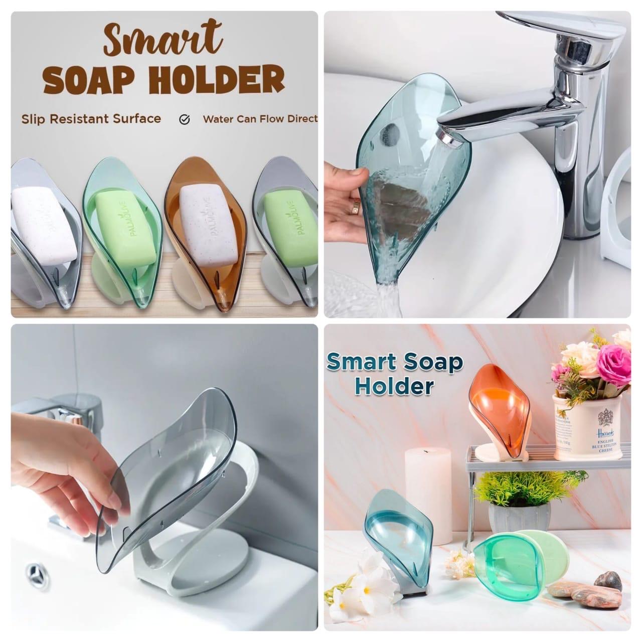 - Keep your soap dry and long-lasting with our Smart Leaf-Shaped Soap Dish. Designed for efficient drainage, this no-drill, water-resistant holder prevents soggy soap while adding a stylish touch to your bathroom. Perfect for a mess-free and organized sink area!