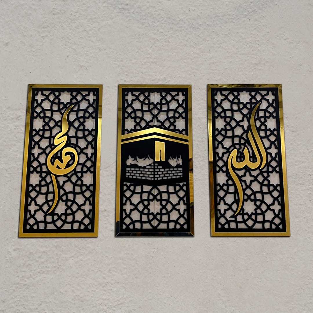 Three Frame Allah Muhammad Kabaa Wall Sceneries, Islamic framed Calligraphies for Home and Office decor